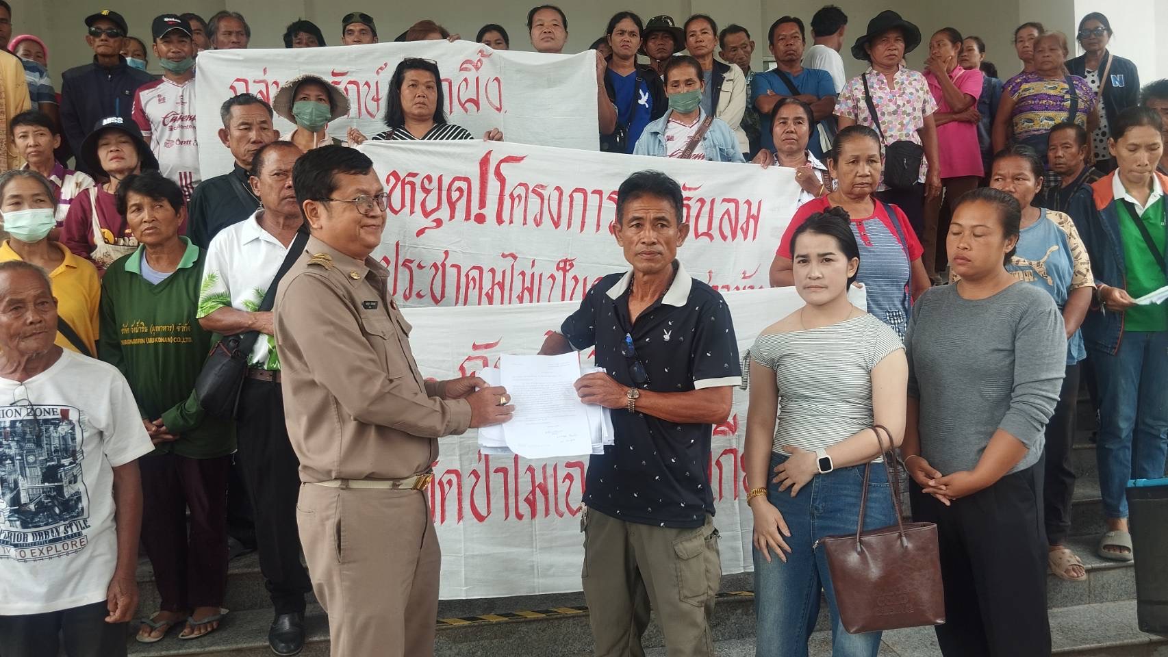 เพื่อยื่นหนังสือคัดค้านโครงการโรงไฟฟ้าพลังงานลม ของ บริษัท อีสานพลังงานสะอาด จำกัด ที่ได้รับอนุญาตให้เข้าทำประโยชน์หรืออยู่อาศัยภายในเขตป่าสงวนแห่งชาติ ป่าดงบังอี่ แปลงที่ 3 เพื่อดำเนินการโครงการผลิตไฟฟ้าพลังงานลม โดยโครงการ ฯ ตั้งอยู่ในพื้นที่บ้านด่านยาว หมู่ที่ 8 ตำบลนากอก อำเภอนิคมคำสร้อย จังหวัดมุกดาหาร ซึ่งบริษัท อีสานพลังงานสะอาด จำกัด ได้มอบหมายให้ บริษัท คอลซัลแทนท์ออฟ เทคโนโลยี จำกัด (บริษัทที่ปรึกษา ฯ) เป็นผู้จัดดำเนินงานศึกษาและจัดทำรายงานประมวลหลักวิธีปฏิบัติรวมทั้งการจัดให้มีกระบวนการมีส่วนร่วมของประชาชน ได้จัดประชุมรับฟังความคิดเห็นของประชาชนผู้มีส่วนได้เสียในวันที่ 8 พฤษภาคม 2568 ที่ผ่านมา มีผู้เข้าร่วมประชุมทั้งสิ้น 333 ราย เป็นประชาชนที่อยู่ในพื้นที่ตั้งโครงการ (บ้านด่านยาว หมู่ที่ 8) จำนวน 9 ราย