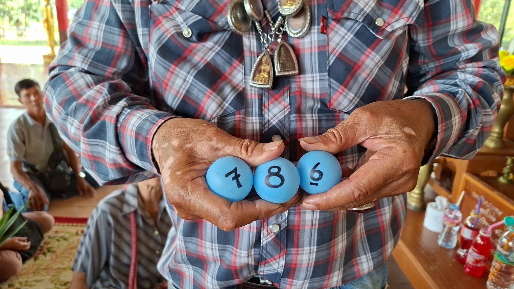 โดยชาวบ้านได้นำดอกไม้ธูปเทียนจุดถวายถวายสักการะต่อหน้าองค์พระพุทธเจ้าทั้ง 3 พระองค์ คือองค์สมเด็จปฐมต้น องค์(องค์สีทอง) องค์สมเด็จพระสมณะโคมดม (องค์สีเขียว) องค์สมเด็จพระศรีอริยะเมตไตร(องค์สีแดง) เสร็จแล้วได้พากันเข้ากราบสักการะองค์สมเด็จประประทานคือองค์สมเด็จปฐมหลวงพ่อทันใจปางมารวิชัย ขนาดหน้าตักกว้าง 10 ศอก 9 นิ้ว ความสูง 21 ศอก มีลักษณะปากสีแดง ที่ตั้งเด่นสง่า ชวนให้ตะลึงถึงความสวยงามที่แปลกและหาชมยากที่ชาวบ้านในพื้นที่เรียกว่าหลวงพ่อทันใจปากแดง ซึ่งภายหลังจากมีการกราบสักการะองค์หลวงพ่อทันใจปากแดงแล้ว คณะศรัทธาสายมู ต่างก็ได้มีการอธิฐานขอโชคพร้อมกับส่งตัวแทนในการล้วงไหนำโชค ซึ่งภายในไหจะมีลูกปิงปองที่เป็นตัวเลข ซึ่งตัวแทนสายมูได้มีการล้วงเลขในไหนำโชค 3 ครั้ง โดยเลขที่ล้วงได้คือเลข 786 จากนั้นได้พากันร่วมตั้งจิตอธิฐานขอโชคจากเลขธูปเสี่ยงทาย ก่อนการจุดธูปต่างตั้งจิตอธิฐานร่วมกันว่า หากเลขรางวัลฉลากกินแบ่งงวดวันที่ 16 พย.จะมาถึง จะเป็นเลขอะไร ขอให้เลขธูปเสี่ยงโชคปรากฏเป็นเลขนั้นด้วยเทอญ หากพากันถูกรางวัลงวดนี้ จะพากันรวบรวมเงินมาสร้างซุ้มขึ้นบันไดศาลาการเปรียญหัวพญานาค ที่กำลังก่อสร้าง จะมาร่วมกันสร้างให้แล้วเสร็จทันที ภายหลังจากอธิฐานเสร็จ ก็ได้ส่งตัวแทนจุดธูปเสี่ยงโชค ต่อหน้าองค์หลวงพ่อปากแดง พากันนั่งรอจนธูปหมด ผลปรากกฏเป็นตัวเลข 412 ชาวบ้านและสายมูต่างพากันนำโทรศัพท์มาถ่ายรูปไว้เพื่อนำไปเสี่ยงโชคในงวดที่จะมาถึง 16 พย.2568