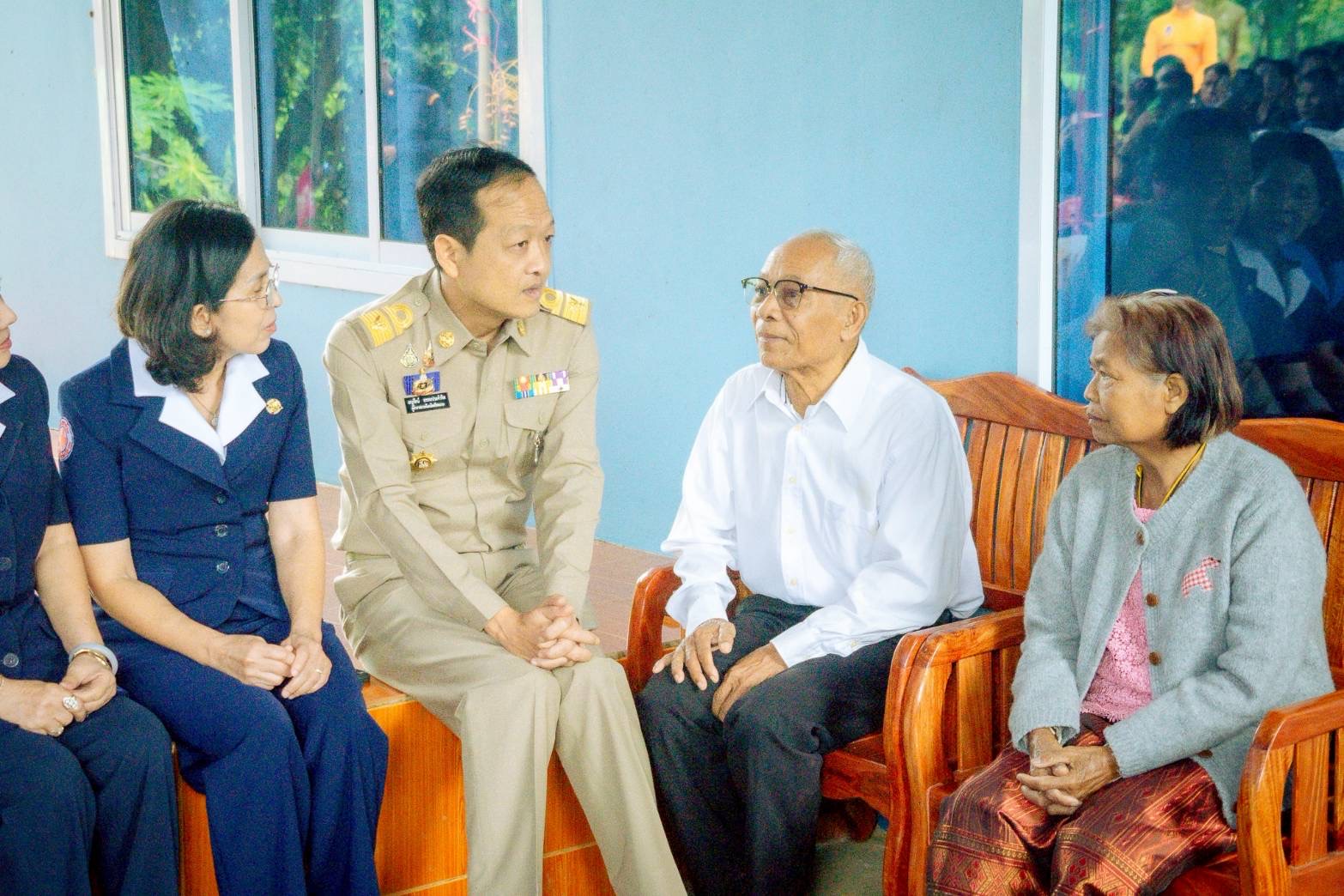 ต่อมา นายอนุรัตน์ ธรรมประจำจิต ผวจ.ศรีสะเกษ พร้อมด้วย นางโสภา ธรรมประจำจิต นายกเหล่ากาชาดจังหวัดศรีสะเกษ และคณะ ได้เดินทางลงพื้นที่เยี่ยมครอบครัวของ จ.ส.อ.เทิดศักดิ์ สมาพงษ์ ที่บ้านเลขที่ 156 หมู่ที่ 4 บ้านทุ่งยาว ต.ละลาย อ.กันทรลักษ์ จ.ศรีสะเกษ ซึ่งบ้านหลังดังกล่าวมี นายสุทิน สมาพงษ์ อายุ 71 ปี (บิดา) ป่วยโรคเบาหวาน นางเขียว สมาพงษ์ อายุ 69 ปี (มารดา) ป่วยโรคเบาหวาน และน.ส.ปลิยา สมาพงษ์ อายุ 30 ปี (ภรรยา) ไม่มีบุตรร่วมกัน อาศัยอยู่ ซึ่งลักษณะที่อยู่อาศัย เป็นบ้านปูนชั้นเดียวสภาพมั่นคงถาวร มีลักษณะเป็นห้องโถงโล่ง มี 1 ห้องครัว 1 ห้องน้ำ โดยครอบครัวประกอบอาชีพ เกษตรกรรม ทำสวนทุเรียน จำนวน 8 ไร่ รายได้ 30,000 บาทต่อปี มีหนี้สิน ธกส. จำนวน 150,000 บาท