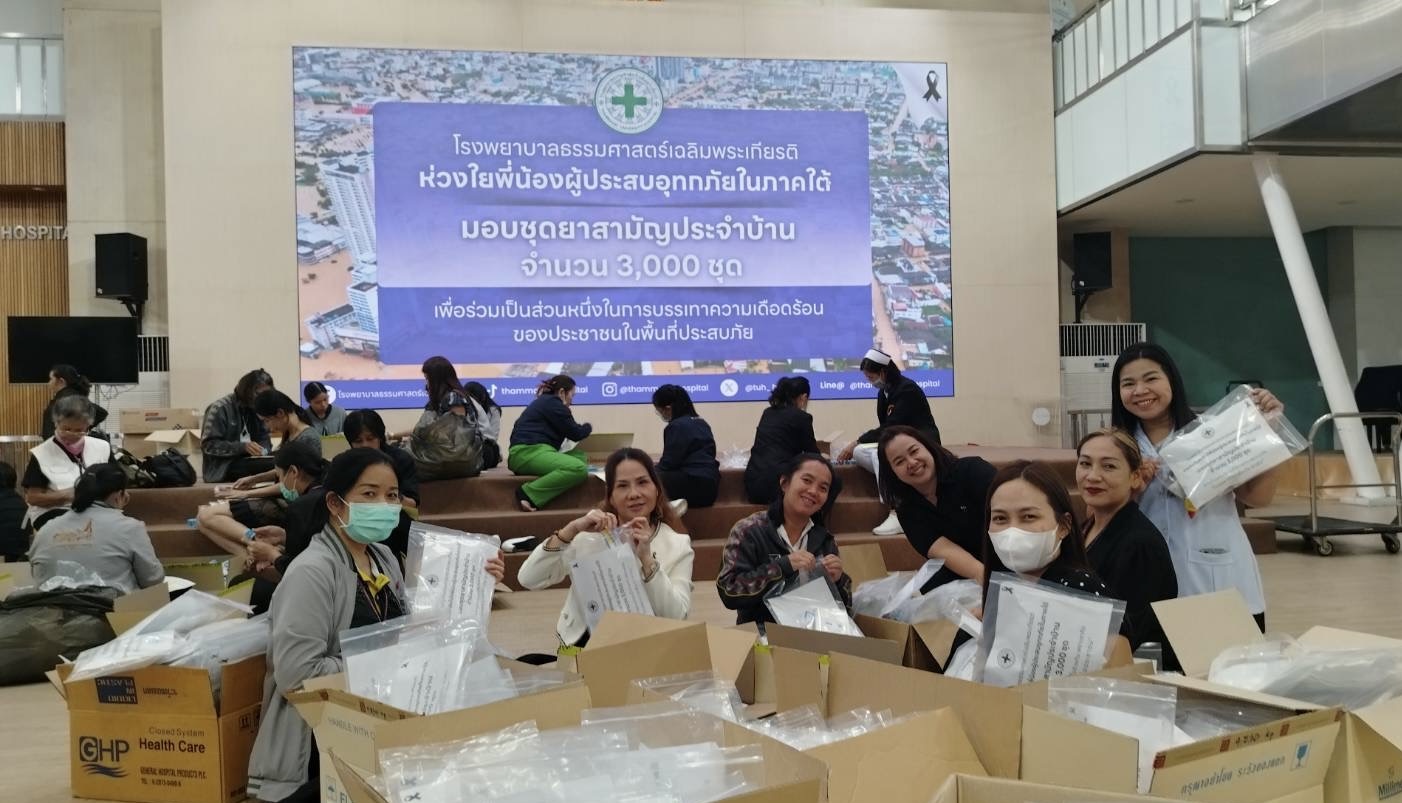 27 พฤศจิกายน 2568 โรงพยาบาลธรรมศาสตร์เฉลิมพระเกียรติ ตำบล คลองหนึ่ง อำเภอคลองหลวง ปทุมธานี ได้แสดงความห่วงใยต่อพี่น้องประชาชนที่ประสบอุทกภัยในพื้นที่ภาคใต้ โดยมีเจ้าหน้าที่โรงพยาบาลระดมกำลังจัดเตรียมและส่งมอบ ชุดยาสามัญประจำบ้าน จำนวน 3,000 ชุด