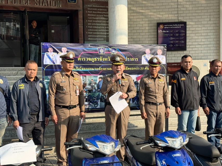 พล.ต.ต.ภูมินทร์ สิงหสุต ผบก.ภ.จว.สมุทรปราการ สั่งการเจ้าหน้าที่ออกสืบสวนและจับกุมกลุ่มเครือข่ายผู้ต้องหาร่วมกันลักทรัพย์รถจักรยานยนต์ ในพื้นที่ จ.สมุทรปราการ ต่อมาเมื่อวันที่ 1 พ.ย.2568 ที่ผ่านมา เวลาประมาณ 20.00 น. สภ.สำโรงเหนือ ได้รับแจ้งจากพลเมืองดีว่า ที่บ้านเลขที่ 170 ม.8 ซ.มังกร-นาคดี 6 ถ.เทพารักษ์ ต.เทพารักษ์ อ.เมือง จ.สมุทรปราการ มีหญิงไทยนำรถจักรยานยนต์มาฝากจอดไว้ จำนวน 8 คัน ต่อมาได้นำรถยนต์กระบะตู้ทึบมาเพื่อขนรถจักรยานยนต์ทั้ง 8 คันดังกล่าวไป รถจักรยานยนต์ทั้งหมดไม่ติดแผ่นป้ายทะเบียน และมีลักษณะต้องสงสัยว่าอาจเป็นรถที่ใช้ หรือได้มาจากกระทำความผิด จึงได้แจ้งให้เจ้าหน้าที่ตำรวจ สภ.สำโรงเหนือ มาตรวจสอบ และทำการตรวจยึดรถจักรยานยนต์ไว้เพื่อตรวจสอบได้ทั้ง 8 คัน ซึ่งจากการตรวจสอบพบว่ามีรถจักรยานยนต์ที่ถูกโจรกรรมมาจากเขตพื้นที่ สภ.บางเสาธง จำนวน 3 คัน, สภ.บางพลี จำนวน 2 คัน, เขตพื้นที่ สภ.บางปู จำนวน 2 คัน และอยู่ระหว่างตรวจสอบ จำนวน 1 คัน จากนั้นเจ้าหน้าที่ตำรวจกองกำกับการสืบสวนตำรวจ ภูธรจังหวัดสมุทรปราการ ได้ทำการสืบสวนเพิ่มเติม จนทราบตัวผู้ต้องสงสัย และดำเนินการขออนุมัติหมายจับจากศาลจังหวัดสมุทรปราการ จำนวน 1 ราย