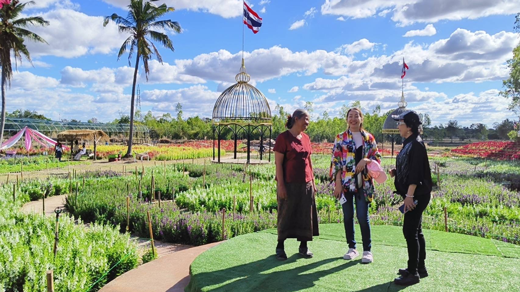 ด้าน ดร.กัลยาณี ธรรมจารีย์ นายกสมาคมส่งเสริมเครือข่ายการท่องเที่ยวจังหวัดศรีสะเกษ กล่าวว่า ต้องขอชื่นชมเจ้าของสวนแห่งนี้ ที่ทุ่มททั้งแรงกาย และแรงทุน ในการเนรมิตพื้นที่ตรงนี้ให้เป็นสวนดอกไม้ที่สวยงาม และยังขยายพื้นที่ปลูกดอกไม้เพิ่มเติมอีกจำนวนมาก นอกจากนี้ยังได้เปิดบ่อเลี้ยงกุ้งเอง เพื่อนำมาประกอบอาหารจำหน่ายให้กับนักท่องเที่ยวได้รับประทานกันอย่างสดๆ หลากหลายเมนู ทั้ง กุ้งเผาตัวโตๆ ต้มยำกุ้งรสเด็ด เป็นต้น รับประทานกลางสวนดอกไม้ ที่อากาศถ่ายเท ลมพัดเย็นสบาย