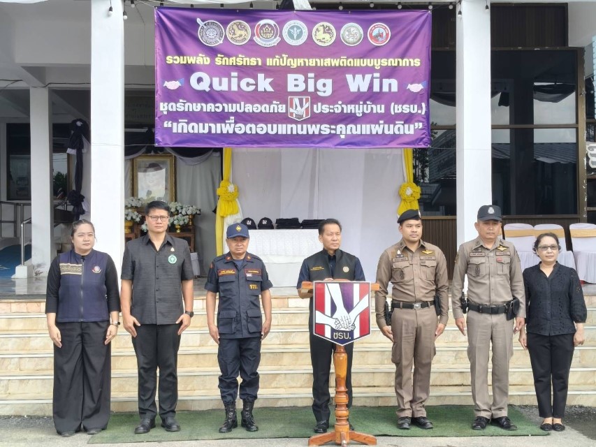 18 ธันวาคม 2568 นายสมเจตน์ ลิมปะพันธุ์ เลขานุการรัฐมนตรีว่าการกระทรวงมหาดไทยเป็นประธานพิธีเปิดกิจกรรม “รวมพลัง รักศรัทธาแก้ไขปัญหายาเสพติด แบบบูรณาการ” Quick Big Win ของชุดรักษาความปลอดภัยประจำหมู่บ้าน (ชรบ.) “เกิดมาตอบแทนพระคุณแผ่นดิน”โดยมี นายสมลักษ์ ยกน้อยวงษ์ รองผู้ว่าราชการจังหวัดสุโขทัยร่วมพิธีเปิด นายเอกสิฏฐ์ วิไลศิลป์ นายอำเภอศรีสัชนาลัย กล่าวต้อนรับ ภายในงานมีการร้องเพลงมาร์ช ชรบ. และกล่าวร่วมส่งกำลังใจให้ทหารแนวหน้า”ศรีสัชนาลัยส่งกำลังใจให้ทหารแนวหน้าสู้ๆ มีการร้องเพลงชาติไทย แสดงพลังความรักชาติ กิจกรรมแสดงการฝึกระเบียบแถวฝึกการตรวจค้นการตั้งด่าน ของชุดรักษาความปลอดภัยหมู่บ้าน(ชรบ.)