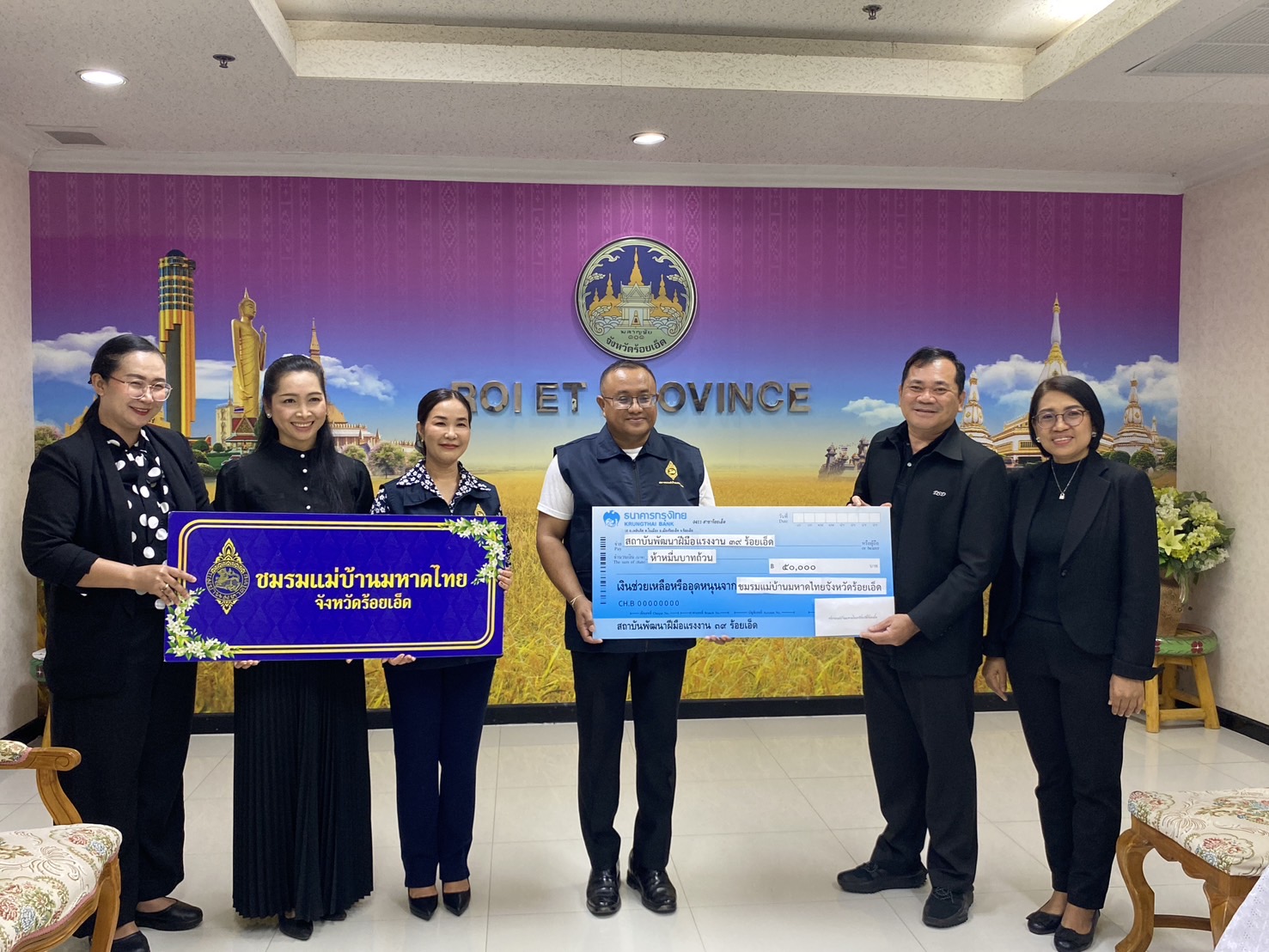 19 ธันวาคม 2568 นายชัชวาลย์ เบญจสิริวงศ์ ผู้ว่าราชการจังหวัดร้อยเอ็ด/ประธานแม่บ้านมหาดไทยจังหวัดร้อยเอ็ด พร้อมด้วย นางพัชรินทร์ ตุระซอง รองประธานแม่บ้านมหาดไทยจังหวัดร้อยเอ็ด มอบเงินสนับสนุนช่วยเหลือแก่นักเรียนกลุ่มเป้าหมายภายใต้โครงการเพิ่มทักษะด้านอาชีพ แก่นักเรียนที่ไม่ได้เรียนต่อหลังจบการศึกษาภาคบังคับ ประจำปีงบประมาณ พ.ศ. 2569 จำนวน 50,000 บาท