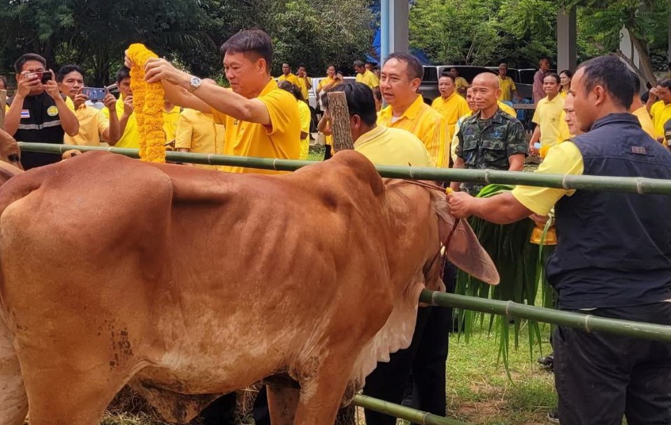 29 สิงหาคม 2568 ที่ ค่ายลูกเสือนีโอ บ้านเหล่าน้อย ตำบลวังสามัคคี อำเภอโพนทอง จังหวัดร้อยเอ็ด ดร.เอกภาพ พลซื่อ โฆษกกระทรวงเกษตรและสหกรณ์ เป็นประธานในพิธีมอบโค ตามโครงการธนาคารโค-กระบือ เพื่อเกษตรกร ตามพระราชดำริ จำนวน 35 ตัว โดย นายอำนาจ มะธิปิไข ปศุสัตว์จังหวัดร้อยเอ็ด และคณะหัวหน้าส่วนราชการในสังกัดกระทรวงเกษตรและสหกรณ์ จังหวัดร้อยเอ็ด ปศุสัตว์อำเภอโพนทอง หัวหน้าส่วนราชการระดับอำเภอ กำนัน-ผู้ใหญ่บ้าน และพี่น้องเกษตรกรอำเภอโพนทอง จ.ร้อยเอ็ด