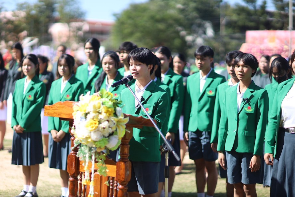 ที่สนามกีฬาโรงเรียนกาฬสินธุ์พิทยาสรรพ์ ดร.วิภา สายรัตน์ ผู้อำนวยการสำนักงานเขตพื้นที่การศึกษามัธยมศึกษากาฬสินธุ์ เป็นประธานพิธีเปิดการแข่งขันกีฬาภายใน “ขี้เหล็กเกมส์” ประจำปีการศึกษา 2568