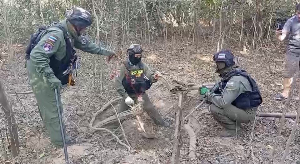 5 มกราคม 69 เจ้าหน้าที่ชุด EOD กองกำกับการตำรวจตระเวนชายแดน ที่ 22 (กก.ตชด.22) ร่วมกับ ชุด EOD ภ.จว.ศรีสะเกษ โดยการนำ ร.ต.อ.ธีรภัทร นามมั่น หัวหน้าชุด EOD กก.ตชด.22 ได้ร่วมกันตรวจสอบร่องรอยหลุมลูกจรวด BM-21 และลูกปืนใหญ่ ลูกปืน ปรส.82 ที่ฝ่ายทหารกัมพูชา ยิงมาตกในหมู่บ้านชายแดน ต.เสาธงชัย และบ้านโศกขามป้อม ต.ภูผาหมอก อ.กันทรลักษ์ จ.ศรีสะเกษ โดย เจ้าหน้าที่ได้เข้าทำการสำรวจตรวจสอบเก็บไปทำลาย จำนวน 10 ลูก ส่วนมากเป็นลูกกระสุนจรวดหลายลำกล้อง BM-21 และกระสุนปืน ปรส.82 ลูกกระสุนปืนใหญ่ ขนาด 100 มม.ตกในพื้นที่ชุมชน จึงเก็บกู้เพื่อนำไปทำลายในพื้นที่ห่างจากจากชุมชน