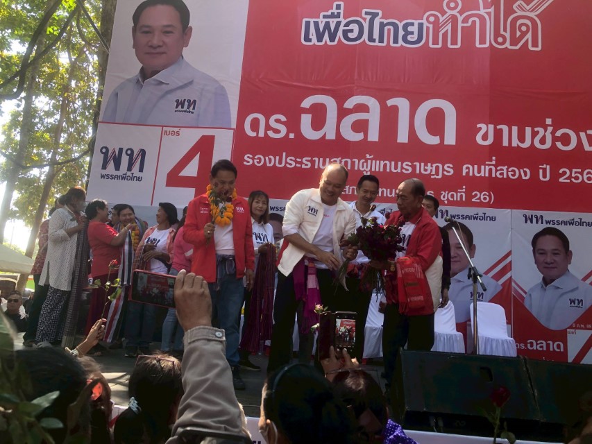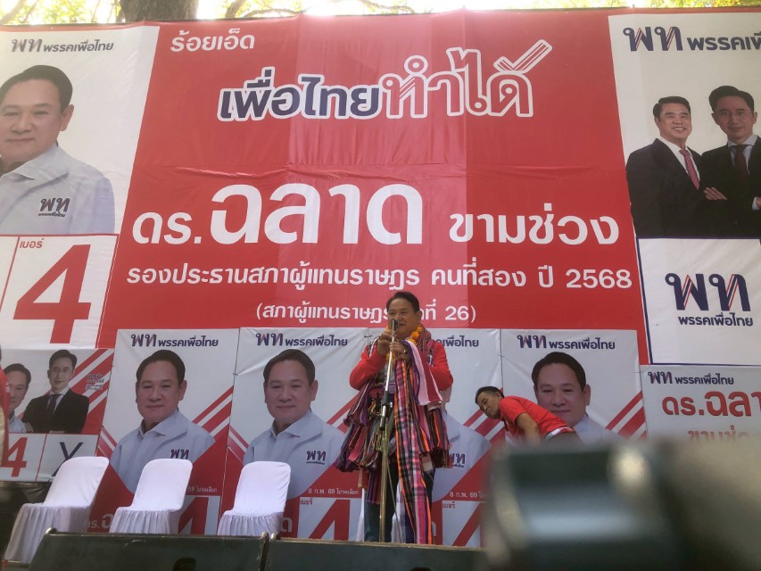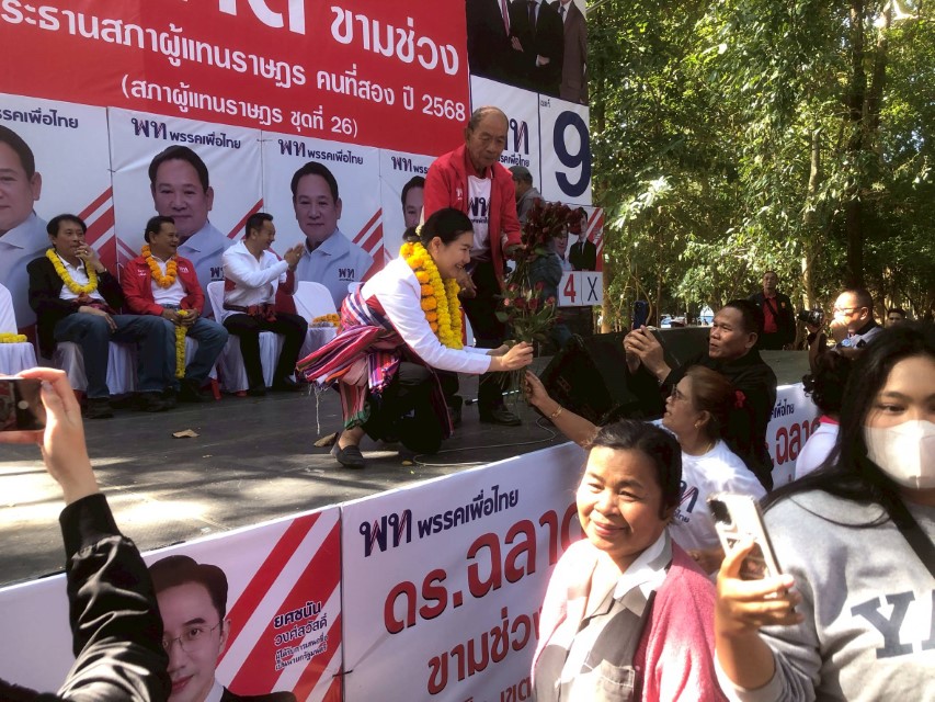 5 มกราคม 2569 ที่ ดอนเจ้าปู่ขามเปี้ย ต.ขามเปี้ย อ.โพธิ์ชัย จ.ร้อยเอ็ด นายณัฐวุฒิ ไสยเกื้อ นางสาวจิราพร สินธุไพร แกนนำพรรคเพื่อไทยหาเสียงช่วยผู้สมัครเขต 2 เบอร์ 4 ดร.ฉลาด ขามช่วง พร้อมเลือกพรรคเพื่อไทย เบอร์ 9 ได้นายก ศ.ดร.ยศชนัน วงศ์สวัสดิ์ พร้อมชูนโยบายประชาธิปไตยที่กินได้ ช่วยเหลือความเป็นอยู่พี่น้องประชาชนให้ช่วยเหลือตัวเองได้ มีชีวิตที่ดี